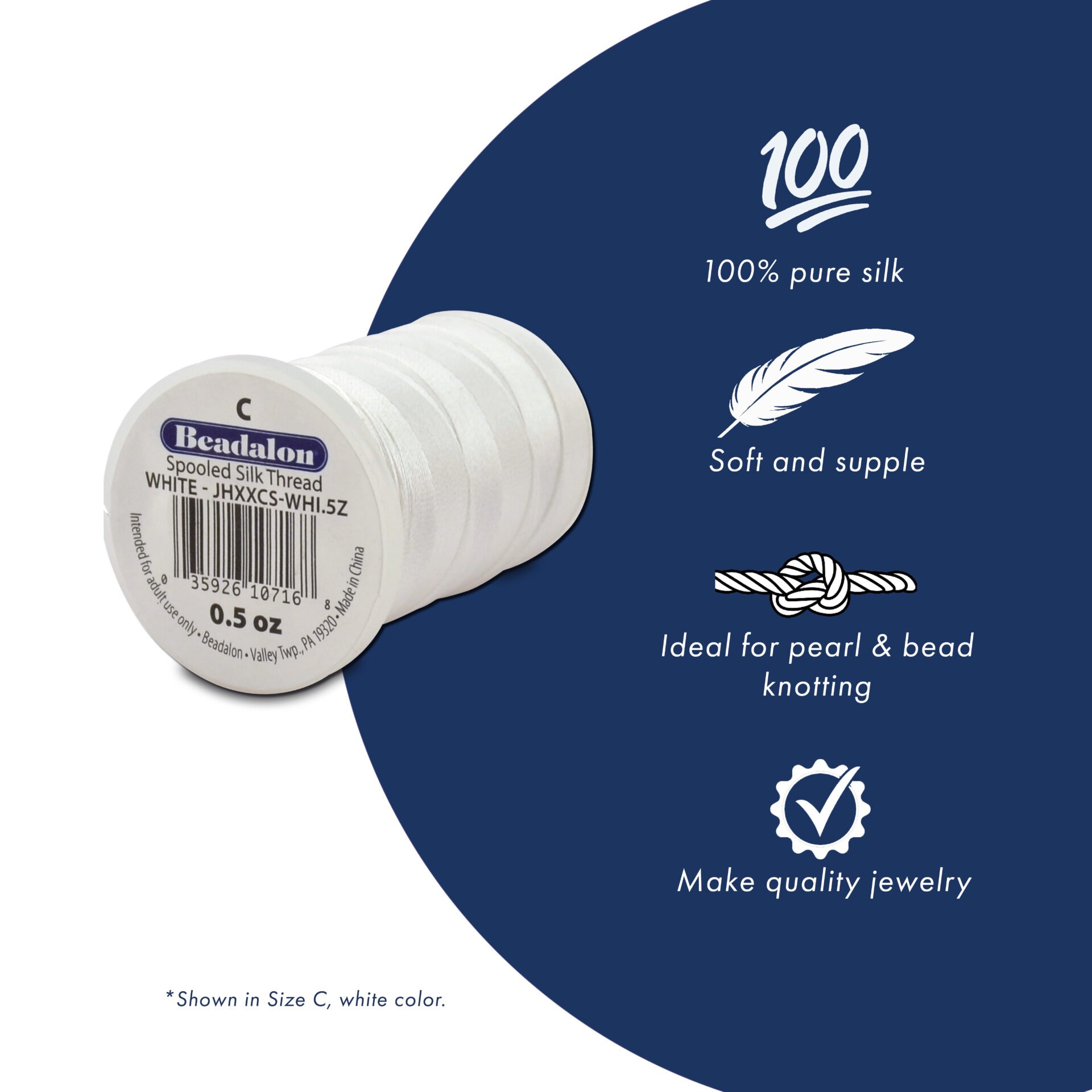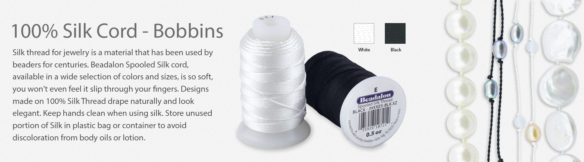 100% Silk Bead Cord – Card – White