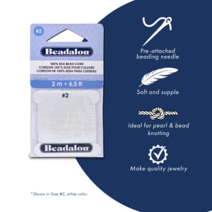 / 100% Silk Bead Cord – Card – White