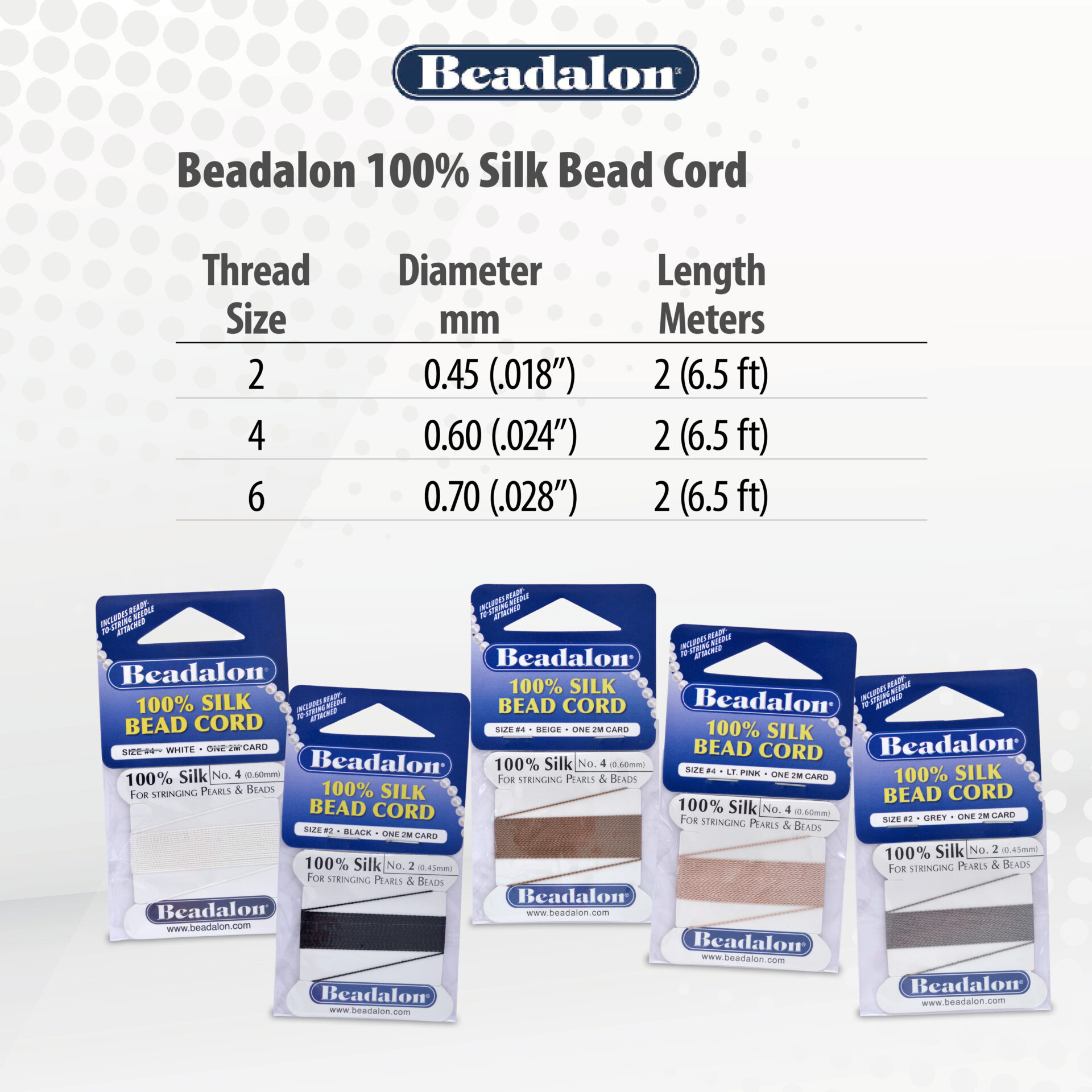 100% Silk Bead Cord – Card – Vari-Pack