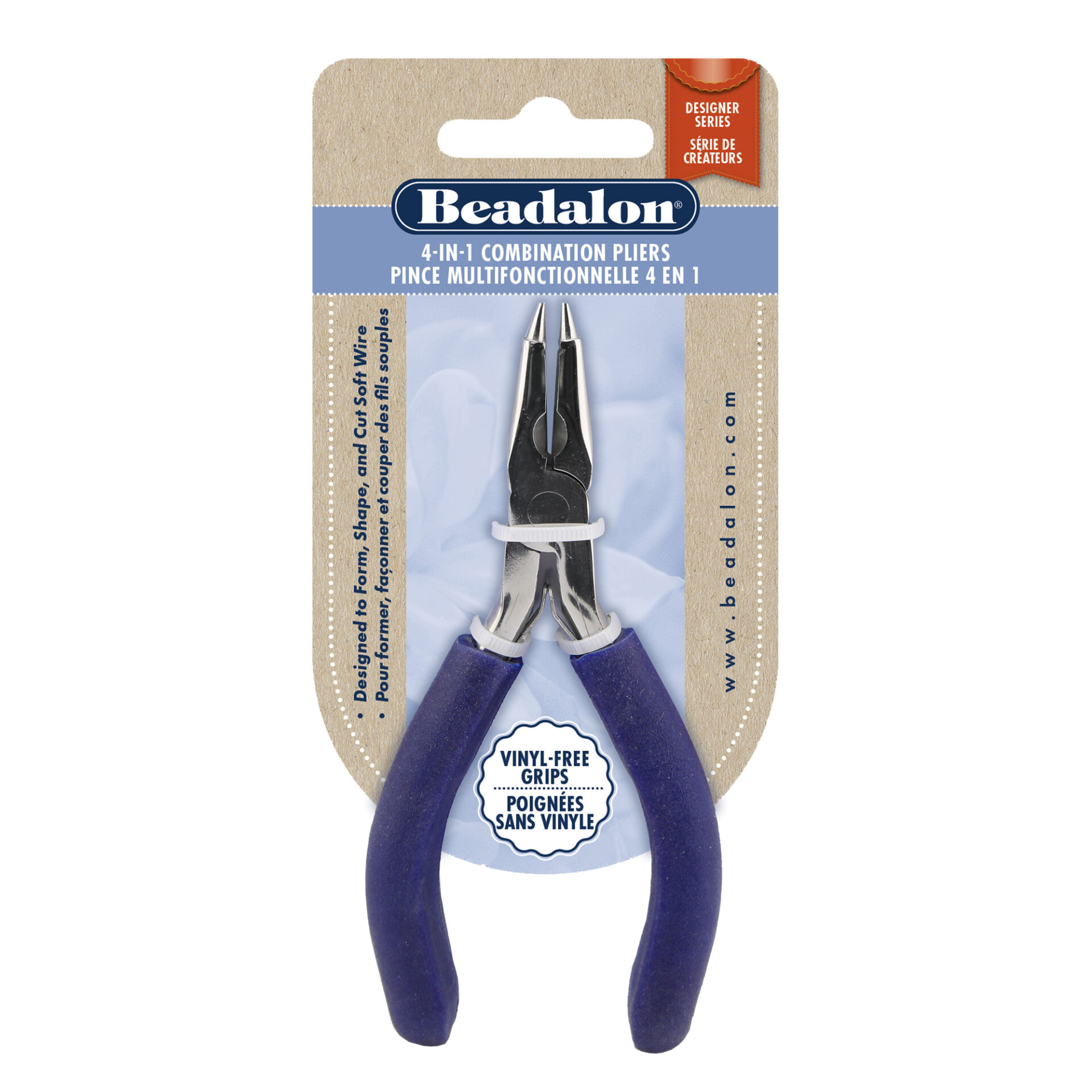 Designer Series Combo Pliers 4-in-1, Dark Blue Vinyl-Free Grips, Box Joint, Cutter, Short Round Nose Tip, Jump Ring Closing Grooves, Center Flat Nose, 4.75 in / 12 cm