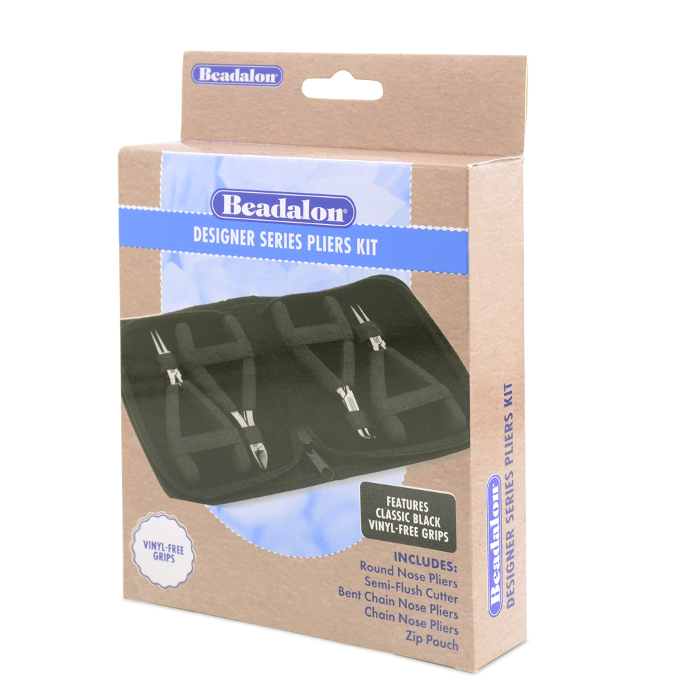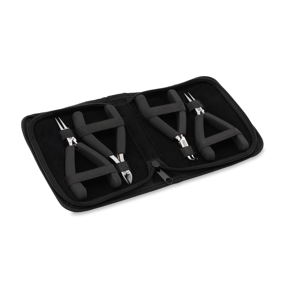 Designer Series Pliers Kit, Black Vinyl-Free Grips, Chain Nose, Bent Chain Nose, Round Nose, Semi-Flush Cutter, 4.75 in / 12 cm each, 4 pc with Zip Pouch