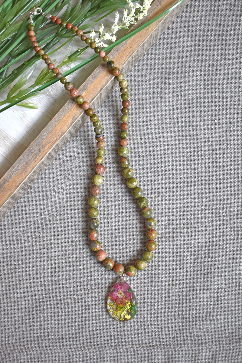 Home » Projects » Designing by Material » Bead Stringing Wire » Graduated Bead Resin Pendant Necklace